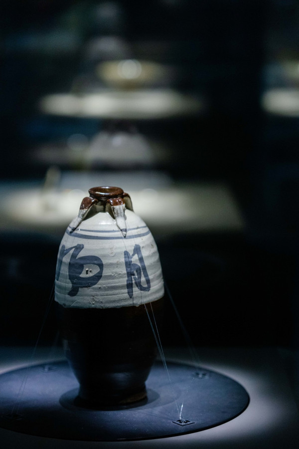 风花雪月四系瓶上腹部褐彩自右向左书写“风花雪月”四字,行草,流畅洒脱,胎体青灰,较细腻,是博物馆中比较珍贵的一件藏品。