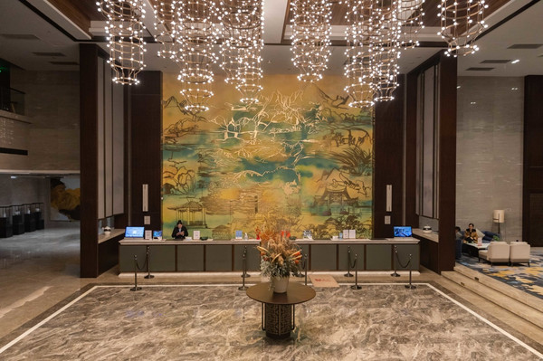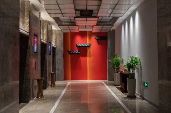 在设计上,酒店将硬朗豪迈的淮河徽派文化与轻舟抚水的 江南 文化巧妙融合,走在酒店里,随处可以感受到艺术气息。
