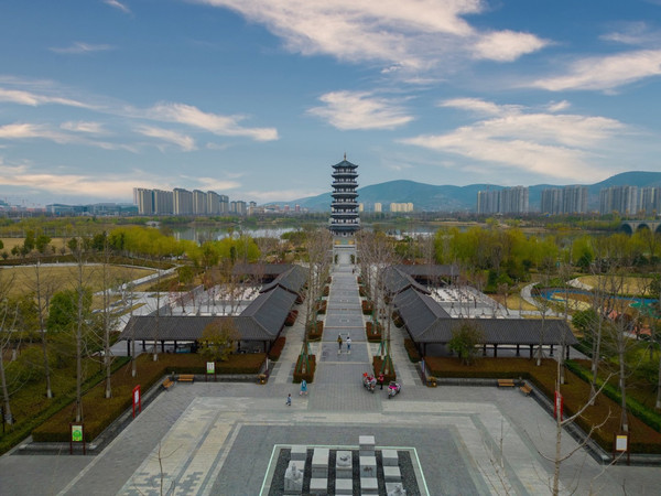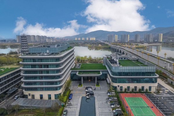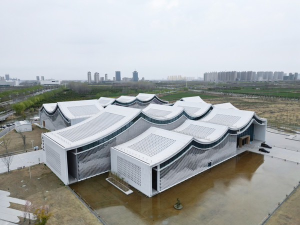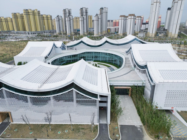 整体建筑本着“天人合一、天圆地方”的哲学理念,融入了园林造景,山水画、书卷折页等元素,是文化的新地标,艺术的新领地。