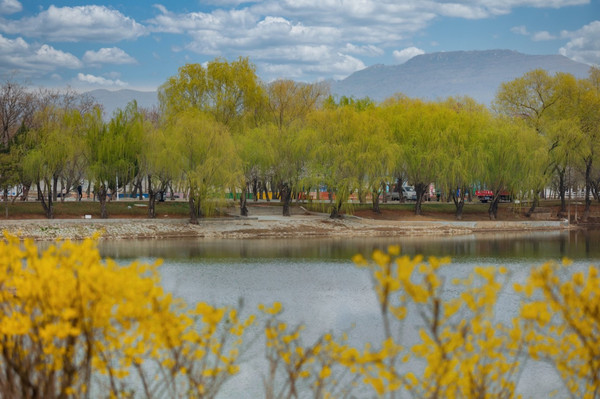 春天的岱湖公园,也是别有洞天。一泓碧水,数峰环立,山水交融,自成一体。湖水清澈,碧波荡漾,山树葱茏,一步一景,气象万千。