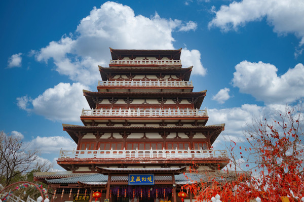 如果你穿了一身汉服,那这里红色的宝塔很适合拍照,站在 塔下 或者登 临高 处,随便怎么拍都很好看。