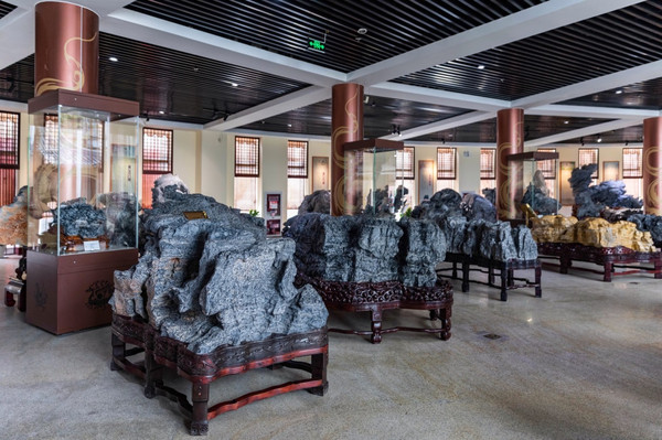 在这里可以看到很多 灵璧 石,磬石、龙鳞石、五彩石、花石青霜玉、透花石、白 灵璧 等等,每块都有自己的名字,每块都是独一无二,价值 连城 。