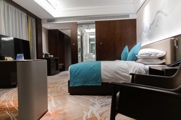 酒店现代化设施一应俱全,客房温馨,可以在阳台看到岱湖公园的美景。登高望远,在此感受这个城市的静谧与美好,时间仿佛停在了此刻……
