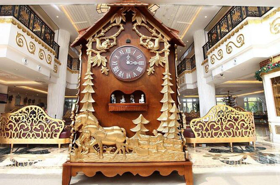 酒店随处可见可爱的麋鹿和咕咕鸟的设计让酒店充满了童话色彩,再加上酒店顶楼的大型咕咕钟每到整点都会响起敲钟声,仿佛在和人们说着舞会即将开幕,让人充满了期待。