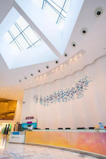 酒店以“水”为设计元素,运用现代科技将影像视觉与嗅觉、触觉充分应用在设计中。在酒店里,客人呼吸到是充满了负氧离子的水的味道,看到的是如影随行的水的影像,与大侠谷瀑布相互呼应,并且室外宏伟壮丽的瀑布美景在大堂任何区域都可尽收眼底。