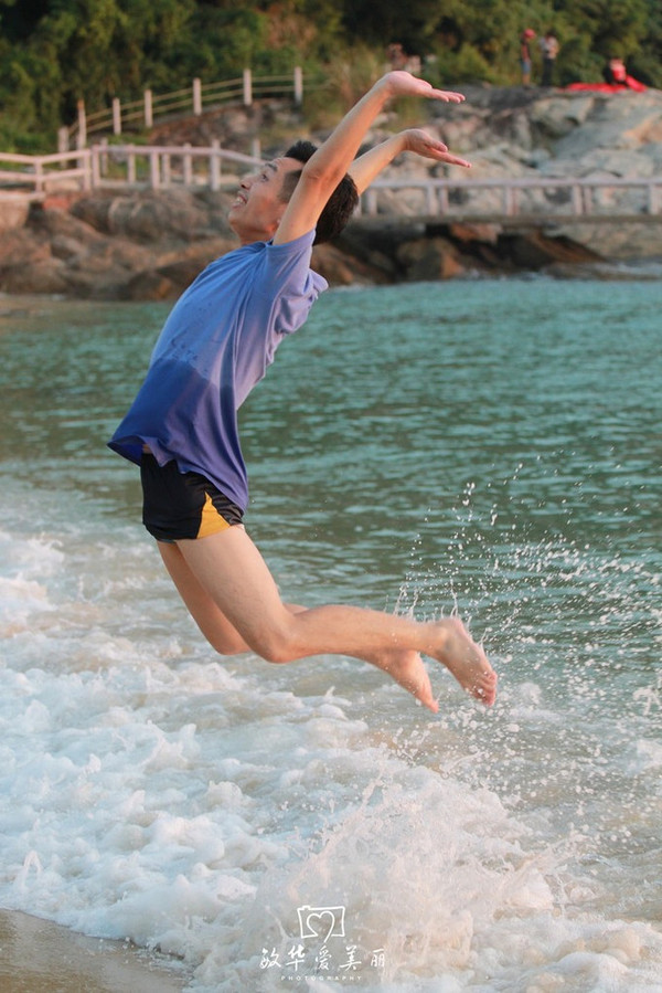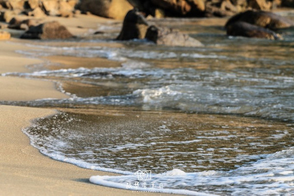 翻滚着的朵朵浪花,它们涌向松软而洁白的沙滩。光着脚丫踩在软软细沙上,无拘无束地任由海水冲刷。
