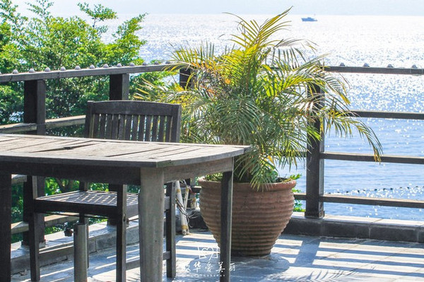 下午的阳光洒落在波光粼粼的海面上,与睡眼朦胧的猫咪和狗狗一起呆在露天的观景台,一边慢慢啜饮杯中的咖啡,一边抬头欣赏满眼的湛蓝。