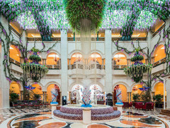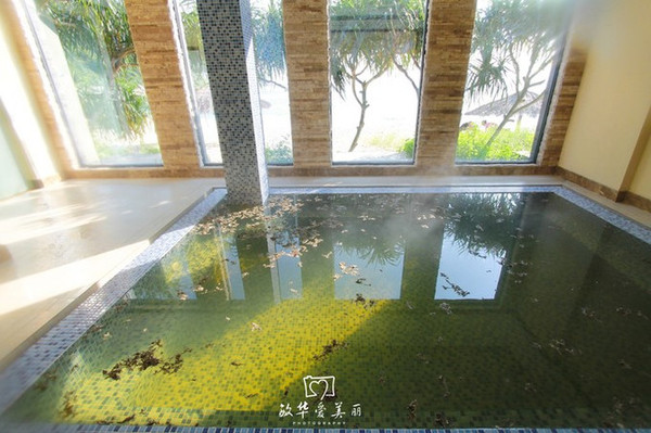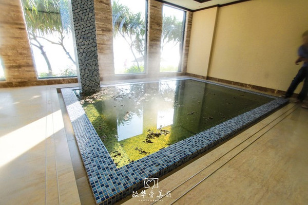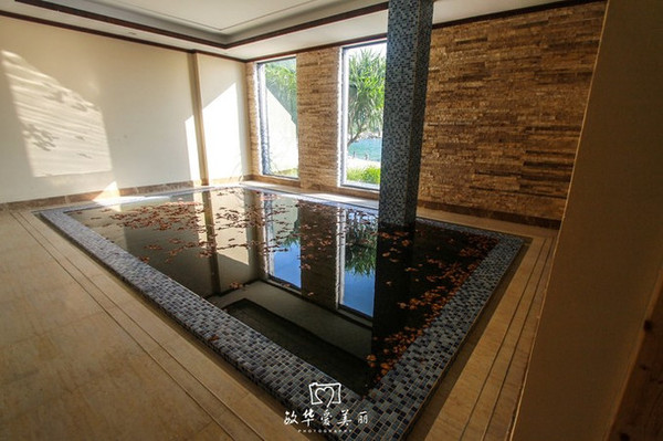 SPA池分为男女池区,女士SPA区内透过透明落地窗,能看到窗外的海滩与蓝天美景,充足的光线恰到好处到透到泡池当中。山泉水泡池上洒满了玫瑰花瓣,玫瑰花香气振荡神经,将身体泡在水上,让水分子尽情地在皮肤上跳跃,然后渐渐穿透全身,让每个毛细孔都尽情呼吸。