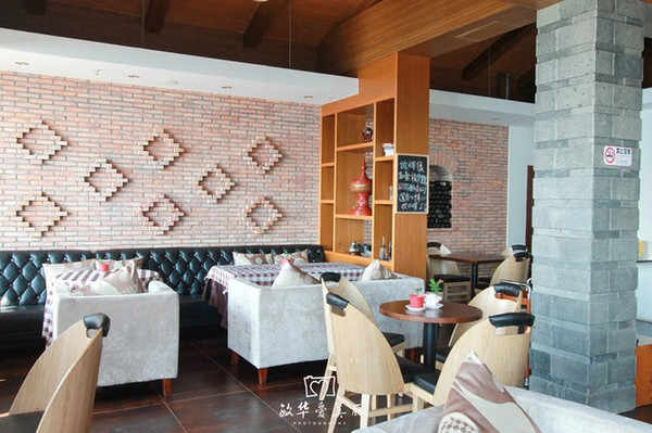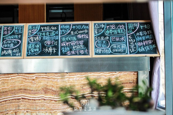 西餐厅是一个品尝下午茶、享受午后美好时光的好地方。室内装修简约清新,主打轻食、甜品、咖啡和花果茶。餐厅的菜单用粉笔手绘在黑板上,趣味满分。几株盆栽带来一片绿意盎然。