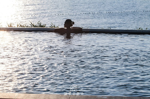 从西餐厅沿着石阶而下,会看到有一个于大海连成一线的无边泳池,当蓝天、大海、泳池三种深浅不一的蓝色碰撞在一起,第一眼就令人惊艳!
