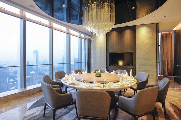来一场云端的美食盛宴,餐厅位于酒店的顶层(58层),简约明朗的餐厅设计,让人进来就耳目一新。
