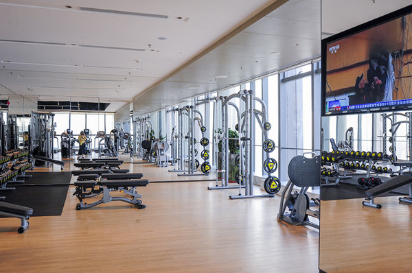 24小时开放的健身中心一定是为锻炼爱好者的量身定做,场地宽敞明亮,木地板干净整洁,国际顶尖水平的健身器材,一应俱全,健身爱好者肯定爱不释手。