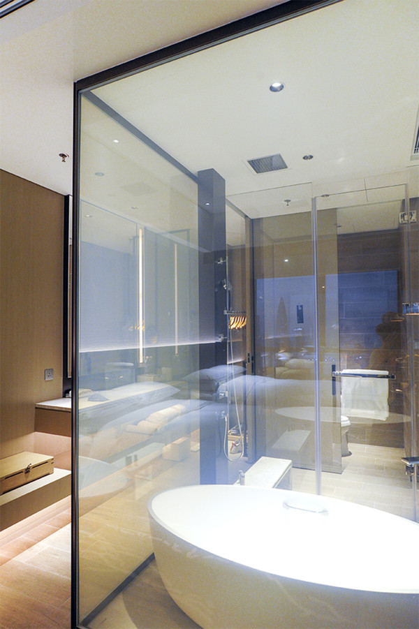 半开放式设计的浴室,也能让你一边欣赏 深圳 夜景,一边放松身心。