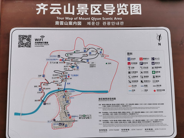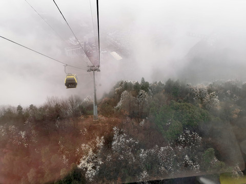 乘缆车上山,在云雾缭绕的仙境中游齐云山,2个小时,然后坐车下山35元。