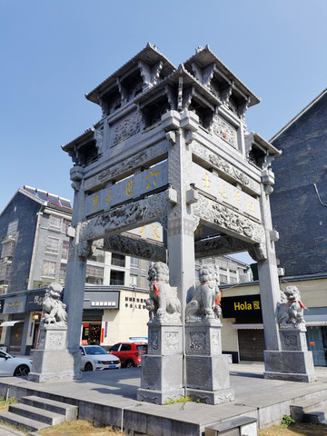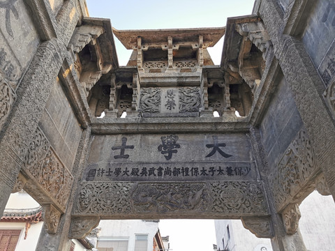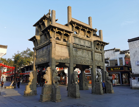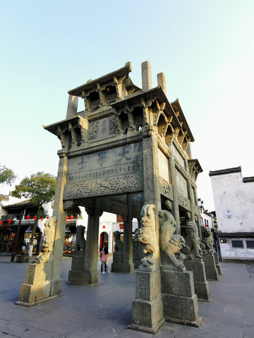 古城内有一座著名牌坊—许国牌坊,气势恢宏,举世无双,是全国现存的唯一一座八脚牌楼。