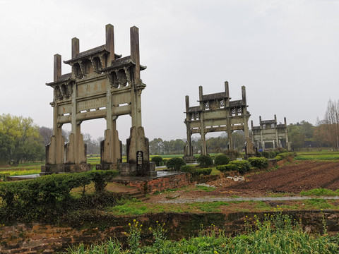棠樾牌坊群,位于歙县郑村镇棠樾村,为明清时期古徽州建筑艺术的代表作。
