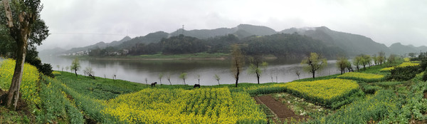 黄灿灿的水乡。三山区峨桥镇浮山的东麓的一条山涧,10万亩油菜花正次第开放中。