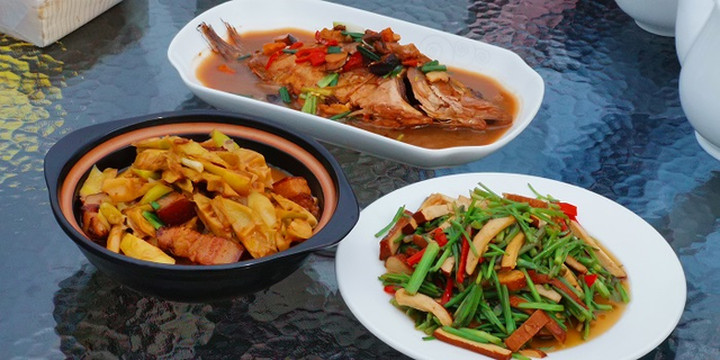 就在在天申桥边,我们找到了一间清清静静、一尘不染的小饭店。闲坐老屋的房顶,点几个春蔬时鲜,边吃边聊,直到灯影绰绰,人影渐稀。