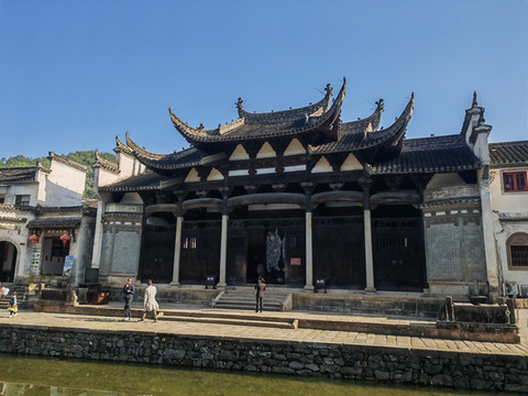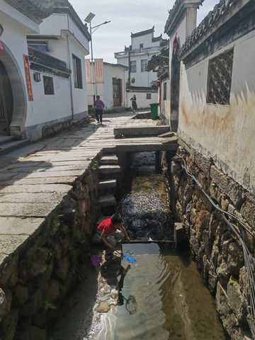 村庄明显是整修过的,干净整洁,粉墙黛瓦,典型的徵派建筑村落.