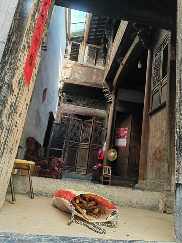 推开门,随处可见的雕花窗的民居,这笋,应是勤劳的主人一早劳作的果实吧!