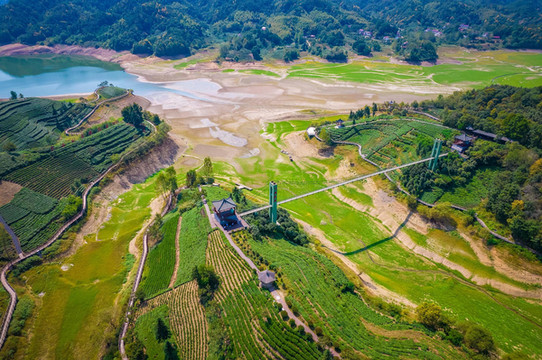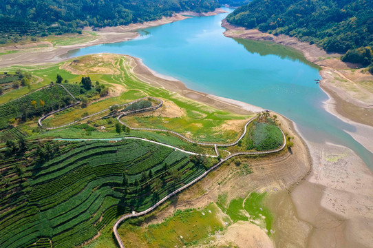 西茶谷主题公园与响洪甸水库相连,仿佛一处有山有水的一个小江南 ,一层层茶树种在凹凸有致的小山丘上,与周边的湖光山色构成一幅天然画卷,难怪总有人说青山绿水出好茶,原来优雅的环境也会让茶叶变的好喝。