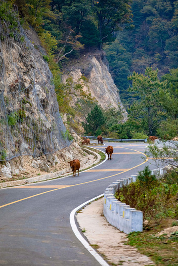 自驾在红岭公路上一定要小心下一个转角会有牛群出没,这也从侧面反映出了这里的自然生态环境是多么好,这些牛一点都不怕人,甚至还会凑到你的身边讨要一份口粮。