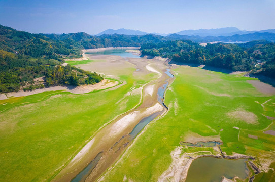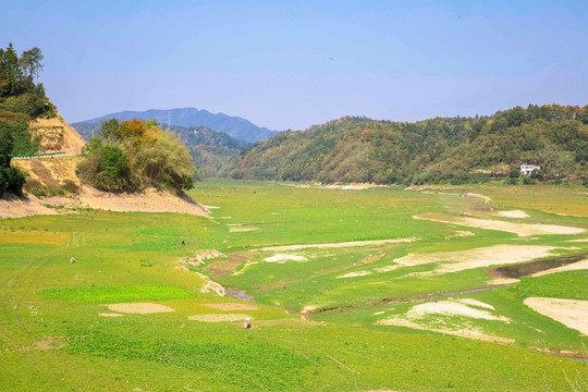 在油坊店乡可以行走在昔日的湖底,感受枯水期不一样的景色,一条蔚蓝的小河还在慢慢流淌,看着远处的牛羊成群,恰如身处大草原中,很难想象丰水期的这里,水中林梢飞鸟相与还,那一片美不胜收的湖景,期待这里能够早日回归满湖春水碧波荡漾的美景。