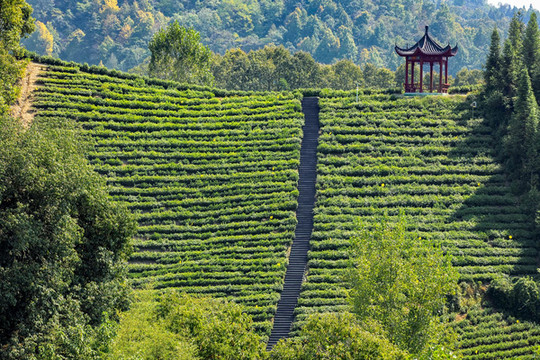 六安金寨盛产一种茶叶名为瓜片,是绿茶的一种,因为形状状似瓜子壳,故名为瓜片,西茶谷主题公园便是盛产瓜片的一处茶园,茶园中环境优美空气清新,茶叶的清香弥漫在空气中,散发出淡淡的清香让人非常的陶醉,这里不仅仅是一个简单的茶园,更是一处休闲放松的好去处,走进茶园可以一览山坡上错落有致的茶田,登上山顶上的茶谷小道,一片翠绿蔚然的景象让人心旷神怡。