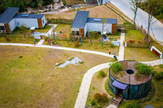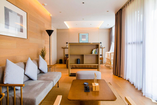 每一栋客房都有自己独立的私人庭院空间,住客仿佛与周围的自然环境融为一体,室内陈设充满科技元素,最令人称道的是,这样的房间可以容纳四到五个人居住,更适合一家人来大湾景区游玩,如果你想要逃离城市的喧嚣,到宁静的乡村住上一段时间,这里也许会是个不错的选择。