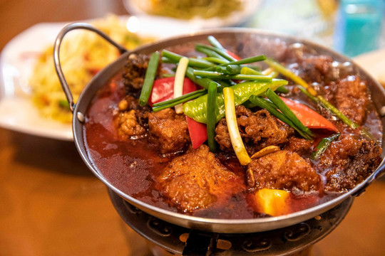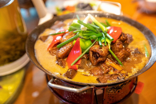 西茶谷中不仅有清新的茶叶,还有农家小院扑面而来的饭菜香,可以在这里的农家小院点上几道地道的金寨菜肴,美美地吃上一顿,金寨的的美食绝对离不开干锅,似乎一切食材都能做成干锅的形式,鲜香的美味在热气腾腾的汤里翻滚,上桌以后继续小火慢煮,不一会满屋子都是饭菜飘香。
