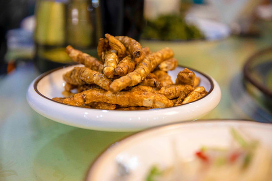 金寨盛产天麻,天麻的外皮裹了一层糖衣,经过油炸保留了天麻本身的味道,又多了一丝丝香甜