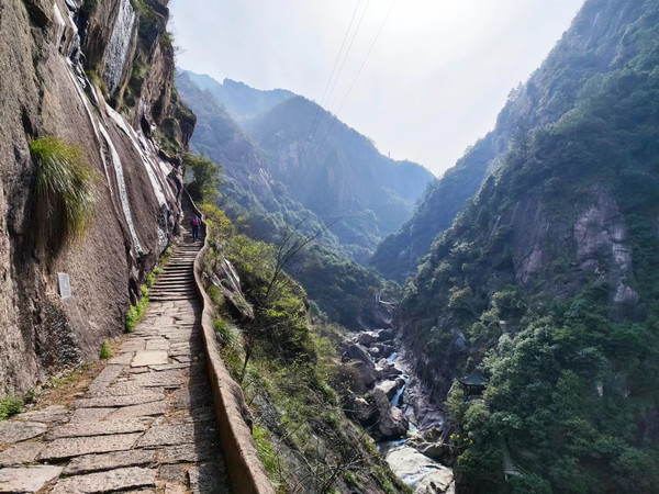 1、徽杭古道,起于安徽省绩溪县伏岭镇,至于浙江省临安市马啸乡。这条古道保存较完整的一段是绩溪县境内的盘山石阶小道,它位于古道起始一段,也是徽杭古道的精华所在。过了入口途中会先经过逍遥河水电站,一路沿着石阶向上攀爬,沿途的左手边是陡峭的石壁,右手边则是悬崖,下面河谷是奔腾的溪水。