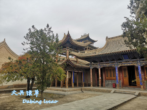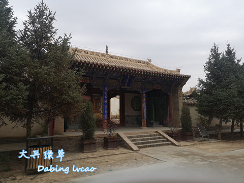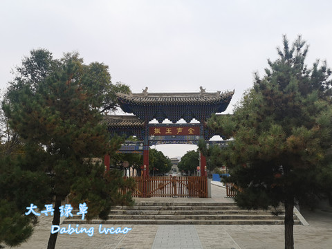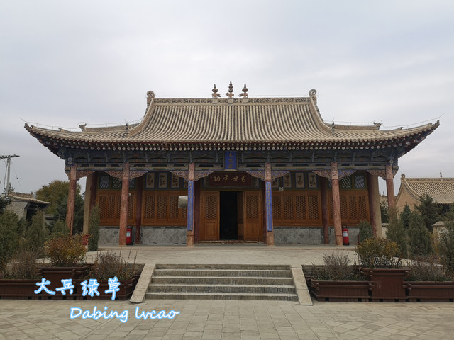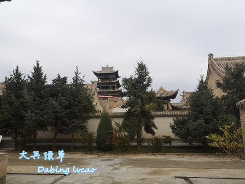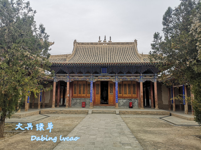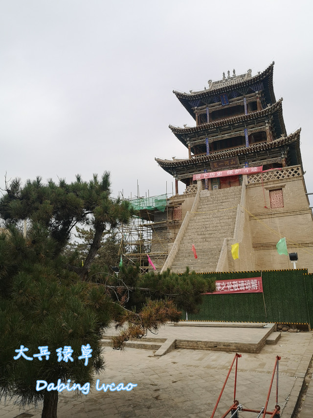 玉皇阁建于9.9米高的三层砖包土筑高台之上,有32级台阶可到达,玉皇阁底层挂着题有“山河一览”匾额,楼阁主体为三层歇山顶式阁楼,高16.1米,傲然挺立于古建筑群之中,登上玉皇阁顶层,可以饱览黄河、古城、丹霞组成的五彩画卷。不过我们去的时候正在维修,没法登阁俯瞰四周。
