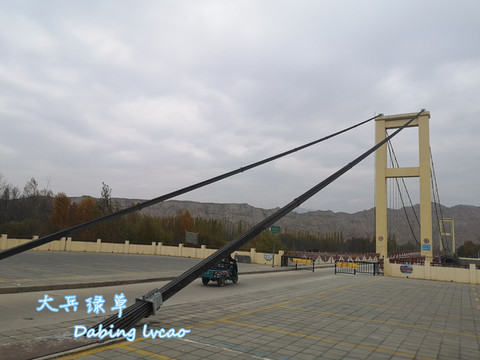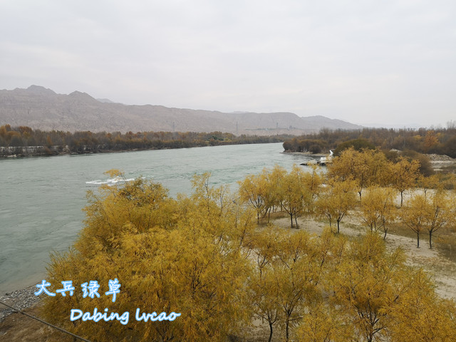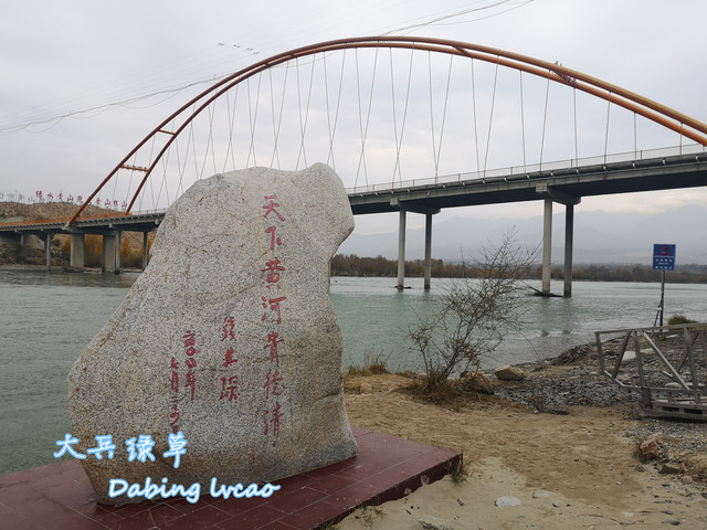 从桥上俯看黄河水,碧绿、清澈、温柔、平缓,像一条绿色的缎带,蜿蜒飘动在大地上。上游河中有绿洲,不远处就是湿地,桥下有游船码头,河边石头上有原国务院副总理钱其琛题写的“天下黄河贵德清”。