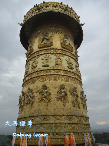 中华福运轮景区位于贵德县黄河畔,由博物馆、倒影池、转经轮等组成。景区三面环绕人工湖,另一面紧邻黄河,周围辅以茂密的高原丛林,给主体建筑增添了庄严神秘的色彩,而安置在15米高底座上的“中华福运轮”的转经筒高26.3米,直径10.22米,高高耸立于蓝天下,蔚为壮观。