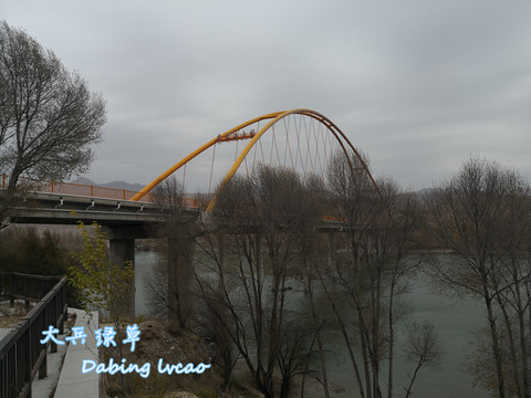 黄河公路大桥也称黄河清大桥或虎头崖黄河大桥,全长366.8米,宽17米,是12孔预应力T形组合梁,先间支后墩梁固结成连续钢构,主跨上部辅以跨径210米,矢高42米的二次抛物线钢管提篮跨拱,大桥造型优美流畅,是贵德县城的迎宾桥。