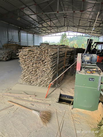 剖片,机削,打磨,留下一㙐粉末后,一根根毛竹变成烧烤扦。