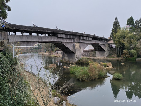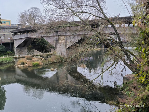 千乘桥,四千匹马力的桥听名字也够壮观的。始建南宋,后火一次水一次毁两次,清嘉庆年间重建,迄今约200年,长度63米。据称是国内现存最长古廊桥。