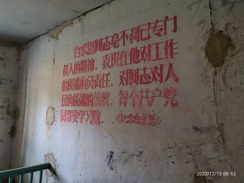 空置的农场场部,满墙都刷着那个年代的标语。