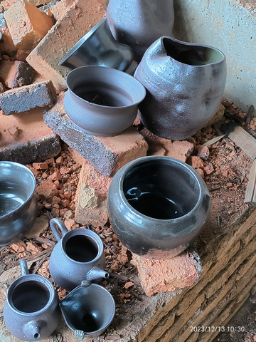 制陶窑炉及坛坛罐罐成品。品茶的,把玩的,酿酒的,腌制的,一应俱全。