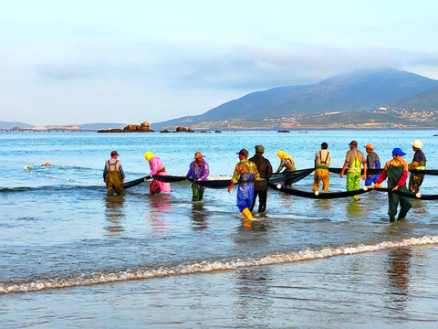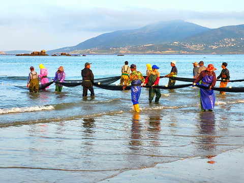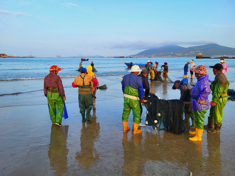 福建-福州-平潭-长江澳风力田景观区-劳作的渔民