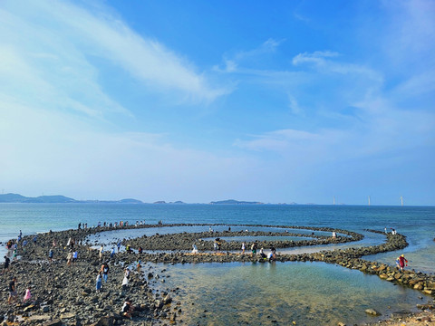 平潭岛亦称海坛岛,是中国第五大岛,福建省第一大岛。位于福州市东南部,东濒台湾海峡,西隔海坛海峡与长乐、福清相望。南北长30公里,东西宽约19公里,面积274.33平方公里。全岛海岸蜿蜒曲折,岸线长达400多公里,为优质海沙滩,海水清澈湛蓝,景色十分宜人。岛上有许多名胜古迹,还有海滨浴场等休闲场所,是滨海旅游度假胜地。