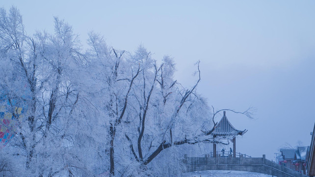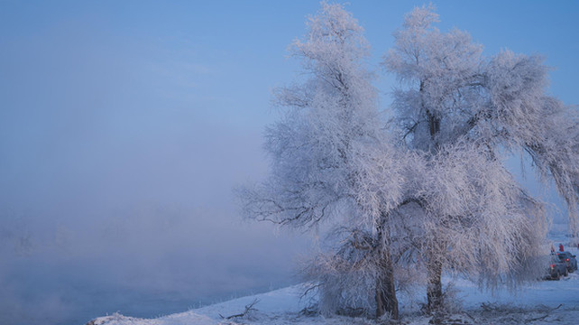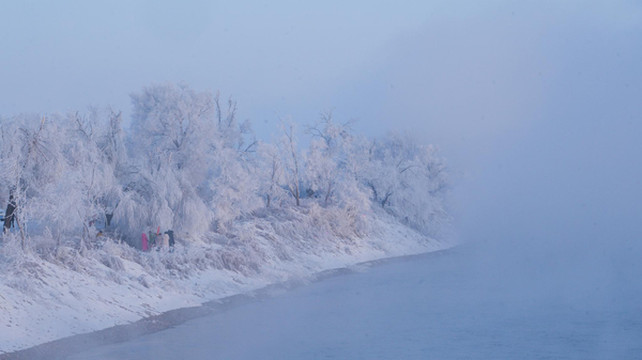 因为早上那段时间温度是最低,并且松花江雾气正好最多的时刻,这也是雾凇形成的原因。