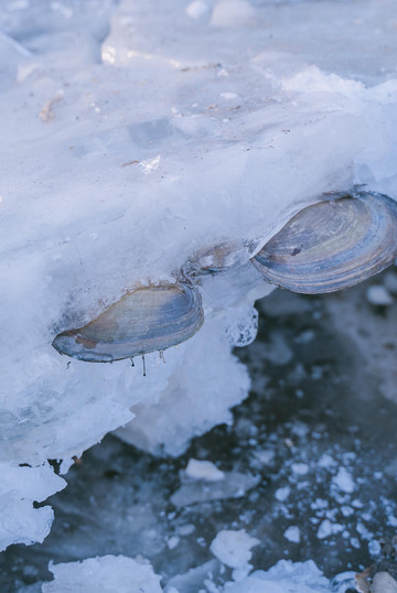最为神奇的是,在湖面的冰块里还藏着一些贝类,我想它们可能是长着长着突然就被冻在了里面吧 哈哈哈~