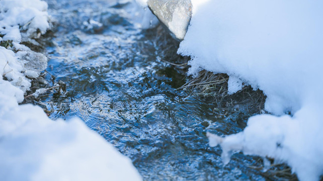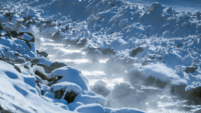 沿着水流的放心一直往上走,这里的水竟然会是温温的,和冰冻之间产生了一种对比。