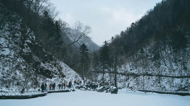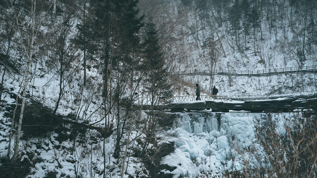 远处的瀑布在结冰与流淌之间犹豫,长白山生生不息的转动。