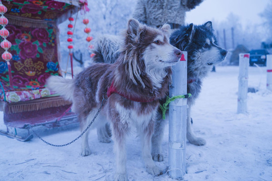 来到雾凇岛的时候,大概是零下20度吧,果然雪橇狗就是雪橇狗,他们双层的皮毛真的不会感觉到寒冷呀,一只棕色一只黑色,仿佛我在两年前有看到过它们了呢~哈哈哈哈!