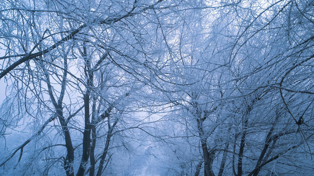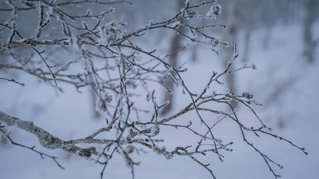 气象学家认为,硬凇发生于树枝或其他固体的迎风面,