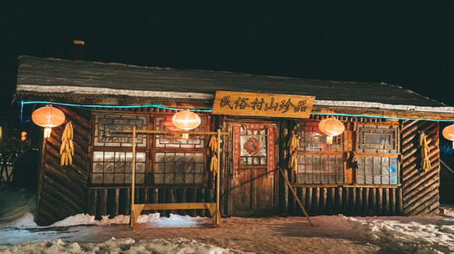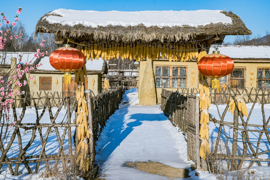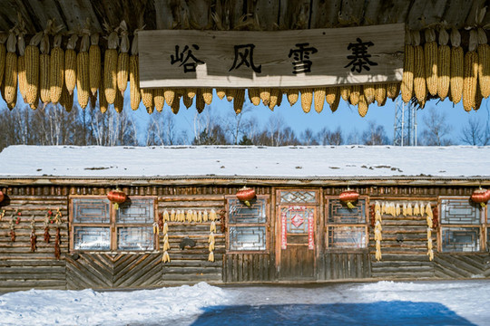 除了雪景以外,凤凰山的民俗村也不能错过,在这里可以感受到最为浓厚的东北当地人的生活气息,看到这一颗颗玉米挂在门口,对,这里还是我每年来的那个东北的冬天。