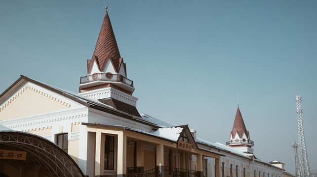 在背后的这栋黄色房子,真的像极了俄罗斯某个火车站的样子,这里被称为俄罗斯风情小镇也不为过,不像有些地方专门建立的欧式风情街,却只是一味的模仿,而这里是真实有人在居住的,加上岁月的痕迹显得更加真实。